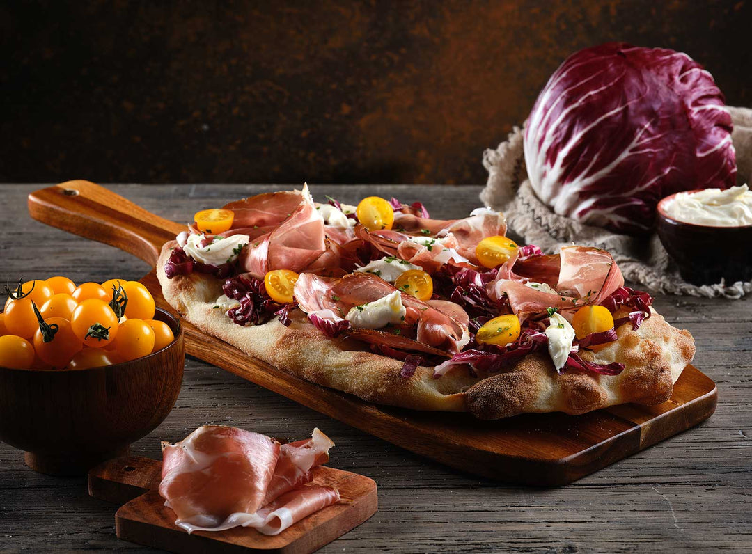 Pinsateig mit Radicchio, Speck und Taleggio-Käse