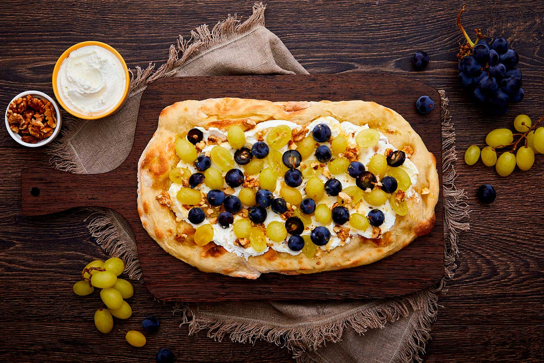 Pinsateig mit Ricotta und Trauben